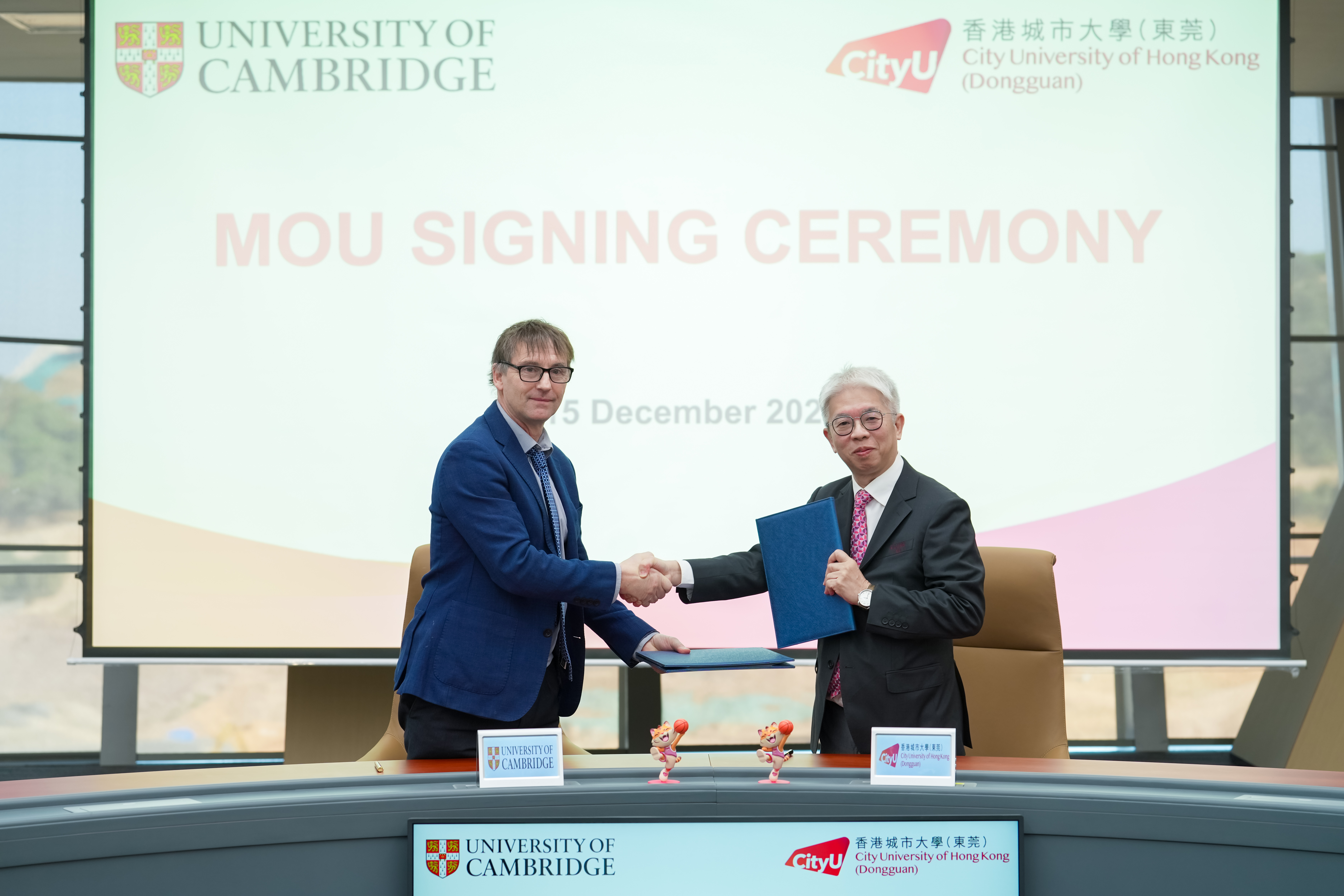 面包屑 Home / University News Centre / City University of Hong Kong (Dongguan) Signs MoU with University of Cambridge City University of Hong Kong (Dongguan) Signs MoU with University of Cambridge 16 Dec 2025 On 15 December, 2025, City University of Hong Kong (Dongguan) and the University of Cambridge have signed a Memorandum of Understanding (MoU) to strengthen collaboration in advancing the global development of students and faculty.The signing ceremony was held at the library of CityUHK (Dongguan). The MoU was signed by Professor CHIU Chi Yue, Vice President (Administration) of CityUHK (Dongguan), and Professor Michael Sutcliffe, Head of the Mechanics, Materials and Design Division in the Department of Engineering at the University of Cambridge. Professor CHEN Fu-rong, Associate Vice-President (Mainland Research) of City University of Hong Kong, Dr. LI Yuan, Associate Vice-President (Teaching and Development) of CityUHK (Dongguan), as well as faculty and student representatives were attending the ceremony.In his remarks, Professor Michael Sutcliffe stated that the two institutions shared common ground and complementary strengths in the fields of engineering innovation and interdisciplinary research. He noted particular alignment in talent development within engineering, as well as in the integration of universities, communities, and industries, highlighting similar developmental foundations and resource characteristics. He expressed strong anticipation for wide-ranging and in-depth partnership between the universities.Professor CHIU Chi Yue pointed out that as an international and innovative university, CityUHK (Dongguan) remains firmly oriented towards global frontiers, placing strong emphasis on the integration of engineering education with scientific inquiry and innovation. He described the alliance with the University of Cambridge as establishing a higher-calibre platform for academic exchange and collaborative research, thereby nurturing innovative talent equipped with an international outlook.The signing of this MoU marks a significant step forward in the collaboration between the two universities, reinforcing their shared commitment to realising common aspirations in education and scientific research. Moving forward, both institutions will continue to deepen engagement in areas such as staff and student exchange and joint research endeavours, working together to pioneer innovative approaches to engineering education and industry–academia integration. Related News City University of Hong Kong (Dongguan) Signs MoU with University of Cambridge 2025 International Innovative Talent Cultivation Symposium - RISC-V × OpenHarmony Innovation Forum Held at CityUHK (DG) Talent, Tech, Planet: CityUHK (Dongguan) Convenes Experts on Global Issues Behind the Scenes at the 15th National Games: A CityUer's 187-Day Journey CityUHK (Dongguan) Shines in China Undergraduate Mathematical Contest in Modeling with Impressive Debut