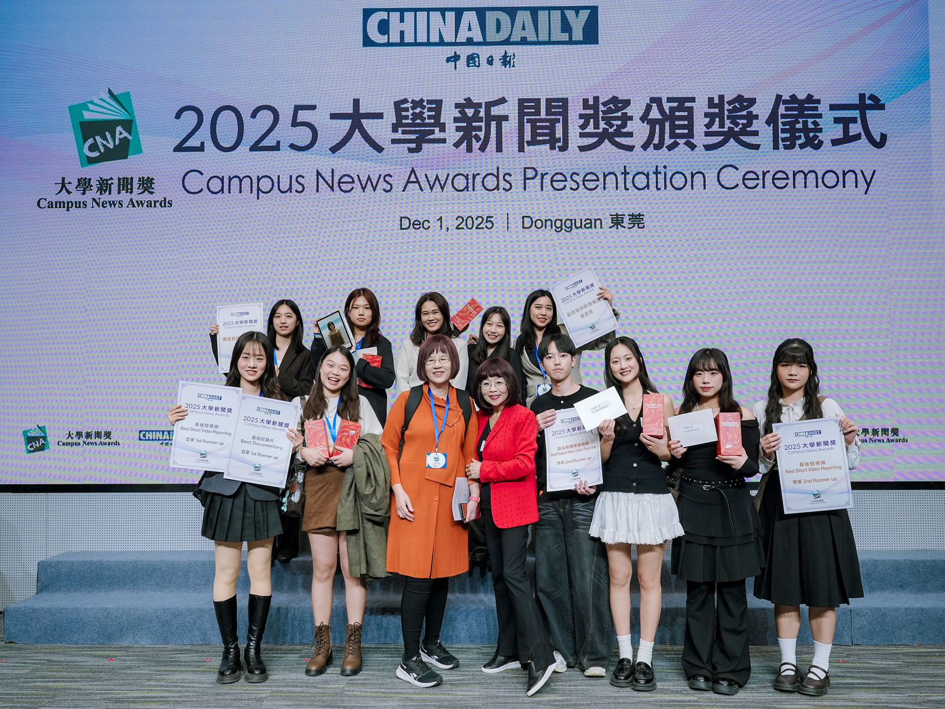 面包屑 Home / University News Centre / Awards inspire next-generation media innovators Awards inspire next-generation media innovators 13 Dec 2025 Premier campus news event celebrates talent, social awareness among students from mainland, HK, Macao, and TaiwanThe Campus News Awards 2025 program, organized by China Daily Hong Kong, has inspired young journalists from across the Chinese mainland, Hong Kong, Macao and Taiwan to stay curious and uncover stories in everyday life, while providing them with a platform to sharpen their skills and foster collaboration and exchanges among these aspiring youths.Distinguished guests and judges encouraged the next generation of reporters to keep questioning and, amid rapid technological advancements, to harness the power of new tools, such as artificial intelligence, and to make use of them to craft more creative and innovative stories.This year's 14th edition attracted more than 3,000 students from 97 universities, including eight from Hong Kong, three from Macao, and 12 from Taiwan. The competition featured multiple categories and received about 1,000 entries, ranging from Chinese and English news reporting to photo essays, page design and documentaries.At the awards ceremony, held on Dec 1 at City University of Hong Kong (Dongguan) in Guangdong province, 20 awards were presented. The occasion attracted nearly 300 attendees, including scholars, media professionals, professors, and journalism students.Delivering his speech at the event, Zhou Li, deputy editor-in-chief of China Daily and publisher and editor-in-chief of China Daily Hong Kong, said the Campus News Awards program has become a major platform for exchange among journalism students and scholars from across the mainland, Taiwan, Hong Kong, and Macao, witnessing the development of journalism education.Because of the growing influence of AI tools, this year’s program dropped some categories, such as Best in News Writing and Best in Headline Writing, and introduced four new ones: Best Environmental News Reporting, Best Innovative Applications Reporting, Best Photo Essay, and Best Feature News Video Reporting.Zhou said that these changes were not intended to downplay writing skills, but to encourage journalism students to move beyond a “tool mindset”."While AI can handle basic drafts, future journalists must learn to use it to dig deeper into stories and to innovate in their expression," he said. “It is not just to use AI, but to use it well, to truly capture the pulse of the times.”Lu Chun, vice-president of City University of Hong Kong (CityUHK) and executive president of CityUHK (Dongguan), said that enhancing global communication capacity is a critical step in connecting China with the world and fostering a more objective and amicable international communication environment.The program provides a platform for professional exchanges among students from across the Taiwan Strait, Hong Kong and Macao. It is not only an encouragement for young journalism talent, but also a vivid embodiment of educational openness and a commitment to international communication," he said.Lu also encouraged students to stay true to their journalistic ideals, shoulder the responsibilities of the times, and view the program as a starting point for contributing their wisdom and strength to journalism and social development.Aspiring young mindsThe program has also motivated many aspiring young minds to observe the world around them and voice their perspectives on social issues.Among the winners were Zhang Shuping and Chen Yuqian from South China University of Technology, whose team took home the Best News Reporting (Chinese) award for a piece examining violent incidents against healthcare workers in China.The team collected around 70 cases through data crawling and interviews, and analyzed the underlying causes and systemic problems behind them."We are thrilled to win the award. We've put in a tremendous effort to collect and piece together all this scattered information," Chen said. "It was a difficult task and also our first time doing it. The result is a recognition of everyone's hard work."Zhang described the award as a "valuable honor" for her and her fellow journalism students. "It inspires us to carry forward the ideals of journalism, to focus on society's pain points and challenges, and to contribute in our own way," she said.Huang Tzu-i, a merit award winner in the Best Environmental News Reporting (Chinese) category from Shih Hsin University in Taiwan, said the program allowed her to see the work of fellow journalism students and the topics they are exploring. “It made me think about the social challenges we are facing and how we should pay greater attention to them.”Huang’s team focused on the survival challenges of Sibataniozephyrus kuafui, a rare butterfly species native to Taiwan that is being threatened by habitat destruction. They also examined broader environmental protection issues in the context of climate change.She said their reporting had a “significant influence” on her, prompting her to reflect on how she could help address the crisis.“It made me realize that we should pay more attention to environmental issues and start with ourselves, by taking actions such as reducing plastic use to make our environment a better place,” Huang said.Media veteran Mike Rowse, a member of the awards jury, praised the contest for encouraging critical thinking among the students. “Young people should ask questions, and journalism encourages them to do that. A competition that rewards the people who ask the best questions and write about them has got to be good,” he said.The program also inspired educators to explore new ways of cultivating future journalists.“We’ve also seen some new categories added this year in response to shifts in the communication and journalism industries,” said Hong Chen, a professor at Chongqing Technology and Business University, who has guided her st