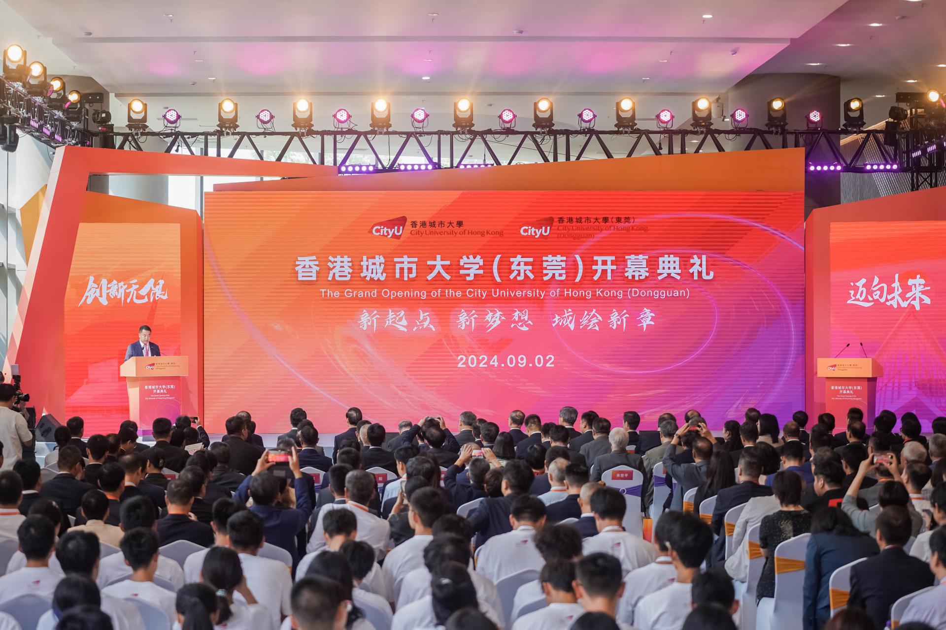 面包屑 首页 / 新闻资讯 / 新起点,新梦想,城绘新章|香港城市大学(东莞)开幕典礼隆重举行 新起点,新梦想,城绘新章|香港城市大学(东莞)开幕典礼隆重举行 2024-09-03 历经五年的筹备建设,香港城市大学(东莞)正式启动,于9月2日举行开幕典礼。全国政协副主席梁振英出席活动,香港特别行政区行政长官李家超发表视频致辞,广东省副省长张少康,东莞市委书记肖亚非,省政协常委、经济委员会主任梁维东,市委副书记、市长吕成蹊出席活动。开幕典礼由香港城市大学(东莞)执行校长、香港城市大学副校长鲁春教授主持。 香港城市大学(东莞)坐落于粤港澳大湾区重要节点城市广东省东莞市,是贯彻落实《粤港澳大湾区发展规划纲要》、推进粤港澳大湾区高等教育合作的标志性成果。 全国政协副主席梁振英:两地合作的新领域、新高点和新里程碑 梁振英表示,香港和东莞同属粤港澳大湾区重点城市,两地优势互补、紧密合作。香港城市大学(东莞)的开幕,是两地合作的新领域、新高点和新里程碑。他希望香港城市大学(东莞)在建设国际科技创新中心、建构具有国际竞争力的产业体系等方面发挥独特的纽带作用,并持续推进港莞两地教学与资源要素的顺畅流通,促进港莞在产学研三方面更好合作,为粤港澳大湾区乃至全国培养学有所成、学以致用的人才。 香港特别行政区行政长官李家超:推动粤港澳大湾区高等教育合作迈上新台阶 李家超表示,今年是《粤港澳大湾区发展规划纲要》发布五周年,香港城市大学(东莞)的创立,是粤港合作的丰硕成果,标志着两地在推动大湾区高等教育合作方面迈上新台阶。香港特区政府将继续与广东省紧密合作,发挥背靠祖国、联动世界的独特优势及作为国际化桥梁和窗口的作用,将香港建设成为国际专上教育枢纽,为科教兴国作出贡献。 广东省副省长张少康:深化大湾区教育交流合作意义重大 张少康表示,香港城市大学(东莞)是粤港教育合作的重要成果,对于深化粤港澳大湾区教育交流合作意义重大。他希望学校高定位打造“新质高校”,高格局聚焦“新质技术”,高水平培养“新质人才”。广东将全力推动学校的建设发展,支持学校办好、办强、办出特色,为推动粤港教育交流合作、推进大湾区建设作出新的更大贡献。 东莞市委副书记、市长吕成蹊:部省同心,校地同力 吕成蹊表示,五年来,部省同心、校地同力,聚几年之艰辛,高标准高质量高水平做好香港城市大学(东莞)各项建设工作。各位同学正值芳华,希望大家珍惜宝贵岁月,在香港城市大学(东莞)潜心读书、认真问学,早日成为国之栋梁,为以中国式现代化全面推进强国建设、民族复兴伟业作出应有贡献。 香港城市大学(东莞)启动开幕 梁振英同各界嘉宾一同为香港城市大学(东莞)启动开幕。 香港城市大学(东莞)及香港城市大学学校代表发言香港城市大学(东莞)以建设高水平大学为目标,全面对标粤港澳大湾区发展规划,以“国家所需、香港所长”为学科建设原则,引入香港城市大学学术标准,实现“两校一质”,利用大湾区综合性国家科学中心先行启动区松山湖科学城平台优势,结合香港城市大学世界领先的创新优势和丰富的国际研究合作与创新孵化经验,推动产学研深度融合,同时促进粤港青年交往交流、交心交融,推进香港更好融入国家发展大局,推动香港与内地在粤港澳大湾区建设重大历史机遇中共同实现高质量发展。 香港城市大学校董会主席黄嘉纯:充分发挥粤港两地合作优势形成双赢局面 香港城市大学校董会主席黄嘉纯表示,在香港城市大学成立三十周年之际,香港城市大学(东莞)获批正式设立并顺利开学,标志着大学迈向了又一个重要的里程碑。他强调,香港城市大学(东莞)创校时确立了一项使命,即通过集结全球的智慧与资源,培养未来的领导者和变革者,推动粤港澳大湾区高质量发展,充分发挥粤港两地合作优势,形成两校协同发展、共同进步的双赢局面。他祝愿即将踏上新学年旅程的同学们,把握教育资源丰富、多元及国际化的学习环境,在美丽的香港城市大学(东莞)校园度过人生中最为精彩难忘的大学时光,携手创新、迈向未来。 香港城市大学(东莞)理事会理事长、香港城市大学校长梅彦昌教授:缔造具有启发性、互动性和创新性的教育环境 香港城市大学(东莞)理事会理事长、香港城市大学校长梅彦昌教授表示,从2020年初,东莞市人民政府、香港城市大学和东莞理工学院签署协议,合作举办香港城市大学(东莞)。建设期间,大学一直承蒙社会各界的大力支持,承载着大家的美好期许。如今,香港城市大学(东莞)不负众望,已经准备好开启一段非凡的旅程。他指出,大学是培养创新人才和促进创新驱动力的地方,香港城市大学与香港城市大学(东莞)将秉持“两校一质”的原则,缔造一个具有启发性、互动性和创新性的教育环境,构建开放式、跨学科合作平台,培育创新型国际化人才。他表示,学校会提供针对香港城市大学(东莞)学生海外交流学习的名额,同时鼓励香港城市大学的学生来东莞学习交流,希望同学们能保持思维的创新、激发创业精神。 教师代表发言与新生感言 香港城市大学香港高等研究院资深院士、中国科学院院士陈和生教授作为教师代表发言,他分享了和香港城市大学以及香港城市大学(东莞)相遇、相识、相知的故事,并勉励大家为国家科学进步贡献