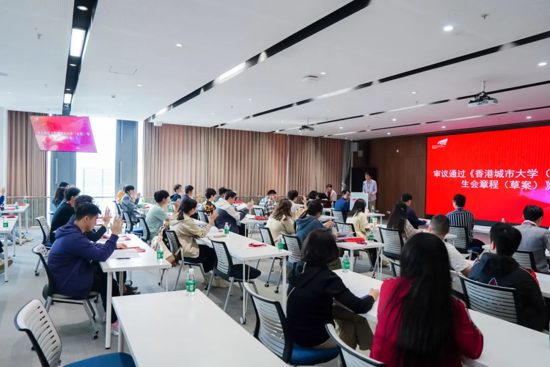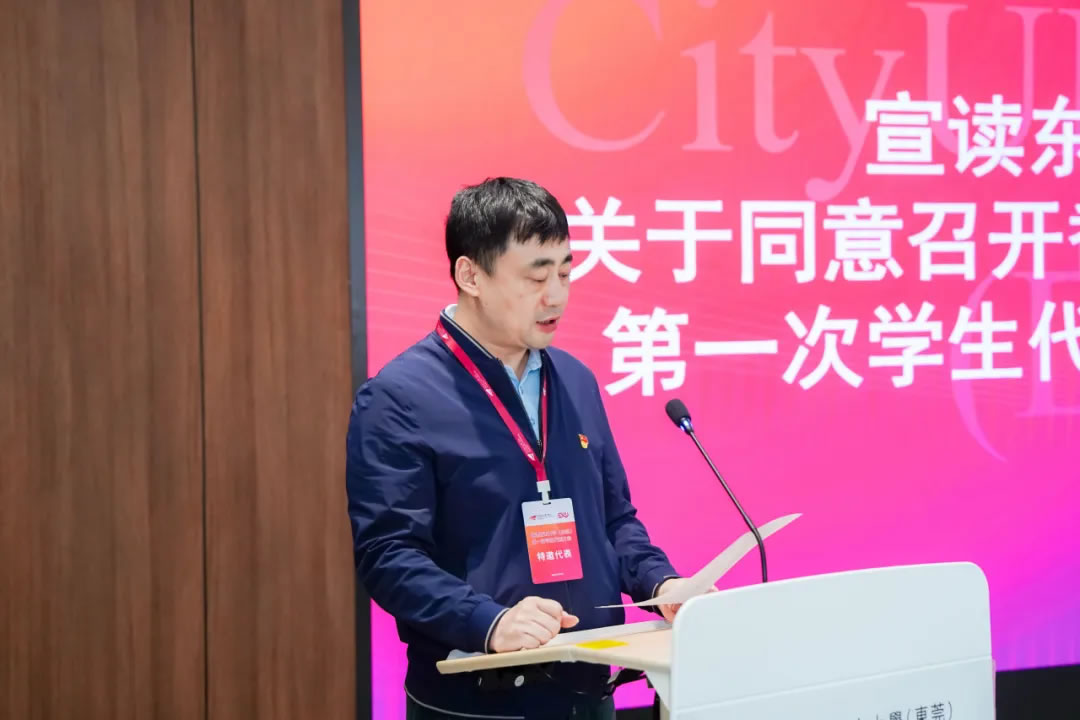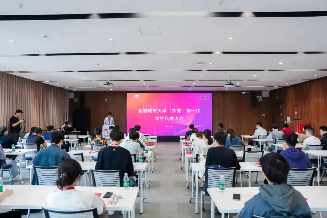 面包屑 首页 / 新闻资讯 / 香港城市大学(东莞)召开第一次学生代表大会 香港城市大学(东莞)召开第一次学生代表大会 2025-12-10 预备会议本次大会分为预备会议和正式会议两个部分。预备会议由全体学生代表参加,会议审议了《香港城市大学(东莞)学生会章程(草案)》《香港城市大学(东莞)学生会第一届轮值主席团选举办法(草案)》等文件。正式会议正式会议在庄严的国歌声中拉开序幕,香港城市大学(东莞)党支部书记赵毅、协理副校长李远、校长助理及学生事务处主任薛铮参加会议。会议由学生会(筹备)主席团成员李宗骏主持。听取学生会(筹)工作报告学生会(筹备)主席团成员李宗骏代表学生会(筹)向大会作工作报告,李宗骏同学分别从组织建设与活动组织两方面介绍了自学生会(筹备)主席团成立后的工作推进情况。宣读东莞市学联批复校长助理、学生事务处主任薛铮宣读东莞市学联《关于同意召开香港城市大学(东莞)第一次学生代表大会的批复》。审议通过章程草案正式会议上所有学生代表表决通过了《香港城市大学(东莞)学生会章程(草案)》。宣读候选人简历大会通过了总监票人、监票人和计票人名单及相应选举办法。学生会指导老师宋帅东宣读了《香港城市大学(东莞)学生会第一届轮值主席团候选人简历》。选举产生第一届轮值主席团徐紫峰、冯子彬、陆成洋、王思睿四位同学先后进行了学生会主席团成员竞选演讲。候选人徐紫峰作竞选演讲候选人冯子彬作竞选演讲候选人陆成洋作竞选演讲候选人王思睿作竞选演讲演讲结束后,现场学生代表进行投票。计票结束,协理副校长李远宣读选举结果并为当选同学们颁发聘书。协理副校长李远与当选为学生会主席团的学生合影(左起):徐紫峰、陆成洋、冯子彬香港城市大学(东莞)党支部书记致辞赵毅书记对大会的顺利召开表示祝贺并肯定了学生会(筹备)主席团之前的工作成果。赵书记认同港城莞学生会“引领、服务、桥梁”的定位,并对学生会第一届主席团提出四点期望:加强政治引领、团结凝聚力量、实践孕育创新、增强综合素养。最后赵书记勉励大家不忘“请党放心,强国有我”的青春誓言,用奋斗书写属于港城莞学子的精彩华章!最后,港城大(东莞)第一次学生代表大会在国际歌中落下帷幕。此次学代会的成功召开,是港城大(东莞)完善现代大学治理、彰显育人初心的重要一步,标志着学生组织化参与校园建设的新起点,为这所融合大湾区优势的新型高校注入了蓬勃的青春活力。在党支部的领导和学生会的纽带作用下,全校师生必将同心协力,共同推动学校在高水平办学道路上稳步前行,为湾区发展与国家未来培养更多栋梁之才。 相关资讯 港城大(东莞)与剑桥大学签署合作备忘录 产学融合,智绘未来:通莞股份捐赠共建“商业人工智能实验室” 香港城市大学(东莞)召开第一次学生代表大会 同城同心,共育人才:东莞农商银行向港城莞捐赠专项资金 共建“全球第三极”:港城大(东莞)举办RISC-V × OpenHarmony创新论坛