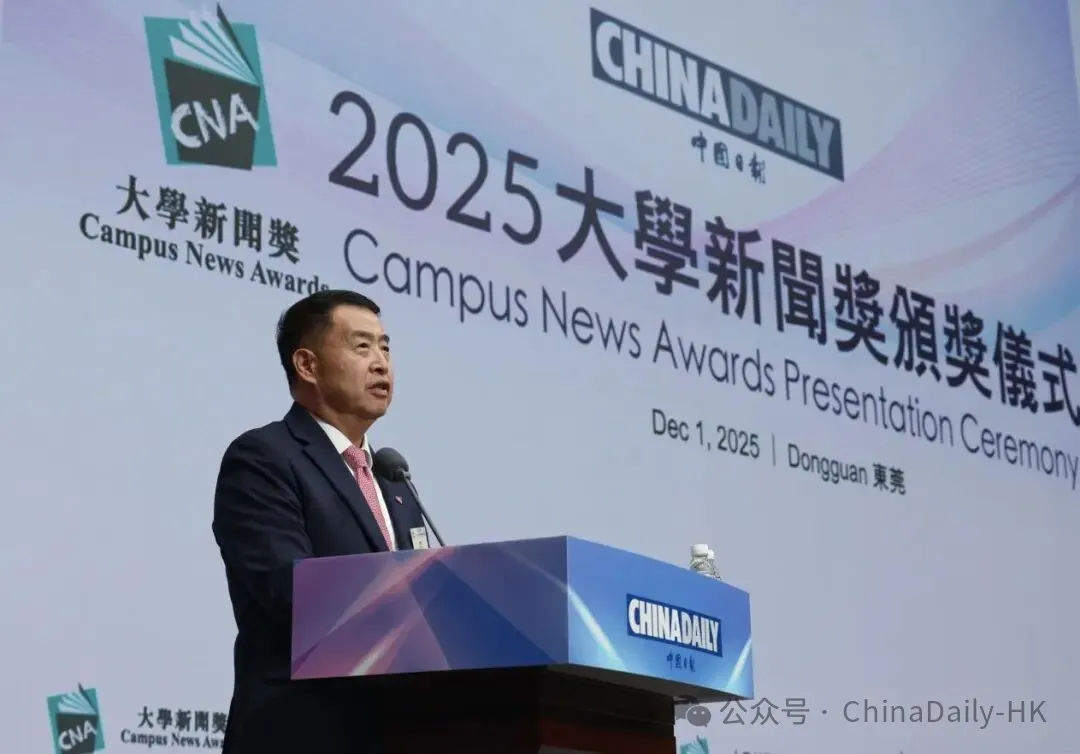 面包屑 首页 / 新闻资讯 / 中国日报2025年大学新闻奖颁奖仪式在香港城市大学(东莞)举行 中国日报2025年大学新闻奖颁奖仪式在香港城市大学(东莞)举行 2025-12-13 由中国日报举办的2025年大学新闻奖颁奖仪式于12月1日在香港城市大学(东莞)举行,香港城市大学(东莞)执行校长鲁春教授、中国日报社副总编辑兼香港版总编辑周立致辞。今年,大学新闻奖组委会还于颁奖仪式前后组织师生参访团,前往东莞松山湖XbotPark机器人基地、深圳科学技术馆参访交流,以大湾区为窗口,让海峡两岸暨港澳地区的青年学子亲身感受祖国科技发展活力,深度体验前沿成果。颁奖仪式主要嘉宾合影广东省东莞市台港澳事务局副局长欧阳全,澳门特别行政区政府新闻局研究及推广厅代厅长马俊业,广东省东莞市委宣传部副部长、市人民政府新闻办公室主任何碧怡,东莞市教育局三级调研员高万军等嘉宾,以及获奖师生、业界专家、媒体代表等近300人出席本次颁奖仪式。香港理工大学专业进修学院院长陈继宇博士发表中场演讲。仪式在正式开始前组织全体嘉宾起立,为11月26日香港大埔火灾的遇难者默哀一分钟,对逝者致以沉痛的哀悼。香港城市大学(东莞)执行校长鲁春致辞鲁春表示,提升国际传播能力是连接中国与世界,构建更客观、友善的国际舆论环境的关键一环。在全球化的今天,讲好中国故事,传播好中国声音已成为时代赋予青年一代的重要使命。新闻工作者当以专业精神与国际视野向世界展现真实、立体、全面的中国。希望同学们以此次获奖为起点,坚守新闻初心,勇担时代责任,为新闻传播事业与社会发展贡献智慧与力量。中国日报社副总编辑兼香港版总编辑周立致辞周立鼓励新闻学子跳出工具思维,当AI能完成基础表达,未来的新闻人应学会用AI深挖故事、创新表达,从“会用AI”到“用好AI”,真正把握时代的脉搏。今天的媒体环境早已不再是纸和笔的时代,我们期待同学们成为复合型的新闻人才,懂数据、善运营、会跨媒体创作,更要把新闻伦理刻进职业信仰,真实、公正、有担当,这才是专业能力的“根”与“魂”。香港理工大学专业进修学院院长陈继宇发表中场演讲陈继宇在中场演讲中分享了AI对新闻创作的影响与启示。他指出,人工智能正通过自动化内容生产、个性化资讯推送、强化事实核查、简化转录翻译等方面重塑新闻业态。然而,人工智能可以赋能记者,但无法替代支撑优质报道的批判性思维与职业操守,技术应当服务于新闻使命。因此,新闻教育应当以培养能够统筹创意与技术的下一代传媒人才为使命。嘉宾为学生颁奖今年是大学新闻奖举办的第十四年,本届组委会新设最佳环保新闻报道(中英文)、最佳图片故事、最佳创意应用报道及最佳新闻专题视频五个奖项,鼓励学生结合融媒体进行创新,在彰显新闻学特色的同时丰富大学生课余生活,吸引了近百所来自海峡两岸暨港澳地区大学的逾三千名学子参与。其中包括香港8所大学,澳门3所大学与台湾12所大学,涵盖香港中文大学、澳门大学、世新大学、北京大学和清华大学等知名高校。本次大学新闻奖共颁发中英文组别奖项及最踊跃参与奖等共20个奖项,共35间学校参赛作品入围,入围学生245人,北师香港浸会大学斩获最多奖项。学生合影留念本届大学新闻奖评委们对获奖学子们送上寄语。北京外国语大学国际新闻与传播学院院长宋毅表示,新闻是时代的记录者,也是正义的守望者,愿同学们用笔触丈量世界,用镜头捕捉真相,用初心守护良知。义守大学大众传播学系副教授林崇能对获奖同学表示祝贺,同时指出本次参赛作品水平不分轩轾,落选作品也同样优秀,希望同学们未来可以在各地发光发热。澳门大学人文学院院长徐杰对参赛作品的专业水平和时代气息表示赞赏,祝贺所有参与者并勉励大家享受过程、收获成长。前香港投资推广署署长卢维思(Mike Rowse)表示,大学新闻奖的评委工作使他了解到当下中国年轻人的思想、愿景及兴趣所在,能够与时俱进。学生合影留念海峡两岸暨港澳地区参赛学生代表也分享了获奖感受。中国社会科学院大学的范珂萌发表获奖感言,感谢大学新闻奖提供宝贵的参赛机会以及评委们对作品的认可,祝愿所有参赛同学不虚此行,找到属于自己的人生答案。台湾世新大学的黄子宜表示,此次获得“最佳新闻环境报道奖”优异奖极大地激励了她作为新闻人的社会责任感,大学新闻奖不仅是一场比赛,更是一个激发专业思考、培育青年新闻人使命感的关键舞台。澳门大学的王小丫表示,本次获奖坚定了自己从事摄影行业的信心,未来会继续发展相关能力。华南理工大学团队表示,对新闻学子而言,获得大学新闻奖是一项含金量很高的荣誉,本次获奖是对所有人能力与努力的认可,将激励同学们继续追求新闻理想。重庆工商学院教授红尘本次带领学生团队取得良好成绩,她表示,大学新闻奖极大地提升了新闻传播教育的质量,让新闻专业教育的教学与参赛形成了完整的实践闭环。大湾区参访活动今年是大学新闻奖第四次走进广东省大湾区城市组织师生参访活动,旨在促进海峡两岸暨港澳地区青年学子亲身感受内地的发展活力与多元文化,加深交流交往,增强国家与民族认同感。松山湖XbotPark机器人基地师生在松山湖XbotPark机器人基地参观体验多种科技产品颁奖仪式前,大学新闻奖组织师生前往
