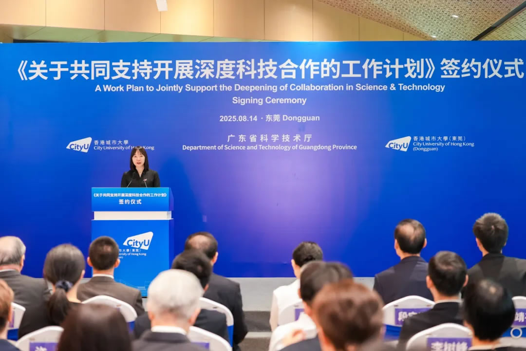 面包屑 Home / University News Centre / GDST, CityUHK and CityUHK (Dongguan) sign Work Plan to deepen tech development bond GDST, CityUHK and CityUHK (Dongguan) sign Work Plan to deepen tech development bond 18 Aug 2025 The Guangdong Provincial Department of Science and Technology (GDST), City University of Hong Kong (CityUHK), and City University of Hong Kong (Dongguan), hereinafter referred to as “(CityUHK (Dongguan)”, signed the Work Plan to Jointly Support the Deepening of Collaboration in Science & Technology (the Work Plan) on 14 August. This milestone marks a new phase of systematic and impactful cooperation among the three parties, injecting strong momentum into the construction of the Greater Bay Area (GBA) international science and technology innovation centre. The signing ceremony took place at CityUHK (Dongguan). Mr Yang Jun, Deputy Director of the GDST; Professor Freddy Boey, President and University Distinguished Professor of CityUHK; and Professor Duan Baoyan, President of CityUHK (Dongguan), jointly signed the Work Plan. The ceremony was witnessed by Mr Zheng Guohong, Deputy Director of the Dongguan Municipal People’s Congress Standing Committee; Ms Li Jun, Deputy Mayor of the Dongguan Municipal; Ms Yang Huifang, Director of the Exchange Cooperation Department at GDST; Mr Zhong Jingping, Director of the Science and Technology Bureau of the Dongguan Municipal; and Professor Lu Chun, Vice-President of CityUHK and Executive President of CityUHK (Dongguan). The event was hosted by Professor Julie Li Juan, Associate Vice-President of CityUHK and Vice President (Academic) of CityUHK (Dongguan). The Work Plan establishes a tripartite collaboration model, deeply integrating talent, funding, and platform resources from Guangdong and Hong Kong, thus creating a synergistic effect. Starting in 2025, the three parties will adopt a "1+1+1" joint funding scheme over a two-year period, forming a seed funding pool to support joint projects between the two universities that align with the socioeconomic development needs of the GBA. The initiative aims to foster original scientific achievements with global influence, promote the cross-border flow of innovation resources, and drive deep integration of the technology industry. Mr Yang stated that the scientific and technological strengths of Hong Kong and Macao are integral to the national innovation system and strategic technological capabilities, adding that the Guangdong Province will leverage its advantages to facilitate the integration of Hong Kong and Macao into the national science and technology innovation framework. He noted that building on Guangdong's strategic deployment for deep cooperation between sister universities in Guangdong and Hong Kong, this new collaboration with CityUHK and CityUHK (Dongguan) will advance Guangdong-Hong Kong technological cooperation and inject new momentum into building a globally influential industrial technology innovation centre. President Boey noted that CityUHK and CityUHK (Dongguan) had established a deeply integrated collaborative network through academic resource sharing, faculty and student exchanges, and joint research projects before signing the Work Plan. He emphasised that the long-standing and close collaboration between the two universities provides a solid foundation for the success of this partnership. CityUHK (Dongguan) is strategically located in the Songshan Lake High-Tech Industrial Development Zone (Science City), near national-level scientific laboratories, high-tech research and development institutions and enterprises. It has joined the "Science Alliance for the Pilot Zone of the Comprehensive National Science Centre in the GBA" and the "Guangdong-Hong Kong-Macao University Alliance" in 2025, collaborating closely with institutions such as the China Spallation Neutron Source and Songshan Lake Materials Laboratory, as well as leading technology companies like Huawei. Related News China Daily: CityUHK (Dongguan) emerges as a global innovation hub and cultural bridge CityUHK soars to 7th in QS Asia University Rankings 2026 – ranks third in Hong Kong Leads in eight key indicators in Hong Kong; tops Asia in three categories Three distinguished persons conferred honorary doctorates at CityUHK CityUHK rises to 75th in THE World University Rankings, retains No.1 worldwide in Industry and continues to lead Hong Kong in International Outlook GBA students vie for CityUHK (DG) Programming Contest