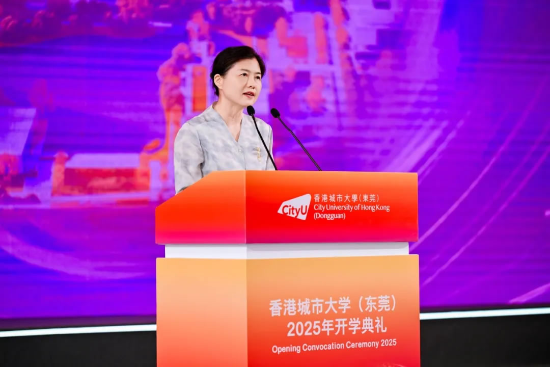 面包屑 Home / University News Centre / City University of Hong Kong (Dongguan) launches Opening Convocation Ceremony 2025 City University of Hong Kong (Dongguan) launches Opening Convocation Ceremony 2025 11 Sep 2025 On 10 September, City University of Hong Kong (Dongguan) celebrated the commencement of its 2025 academic year with a grand Opening Convocation Ceremony, also marking a significant milestone with the official opening of the university library. Distinguished guests including Leung Chun-ying, Vice Chairman of the CPPCC National Committee, Wei Hao, Municipal Party Secretary of Dongguan, Li Jun, Vice Mayor of Dongguan Municipal People's Government, Michael Ngai, Council Chairman of CityUHK, Prof Freddy Boey, President of CityUHK and Chairman of CityUHK (DG)'s Governing Board, Prof Duan Baoyan, Member of the Chinese Academy of Engineering and President of CityUHK (DG), Lin Haichuan, Founder and Chairman of Guangdong Great River Group Co.Ltd. and other guests, alongside students of the 2025 cohort, attended the ceremony. The event was hosted by Prof Lu Chun, Executive President of CityUHK (DG), and Prof Li Juan Julie, Vice President (Academic) of CityUHK (DG). Leung Chun-ying, serving as the guest of honour, encouraged students to leverage Guangdong and Hong Kong’s advantages, actively engage in the Greater Bay Area’s development, and contribute to national progress with innovative and global perspectives. Li Jun, Vice Mayor of Dongguan Municipal People's Government, delivered heartfelt thanks on behalf of Municipal Party Secretary Wei Hao and the municipal government, appreciating the community's support for CityUHK (Dongguan) and offering festive greetings to educators. She underscored the university's pivotal role in advancing higher education collaboration between Guangdong and Hong Kong, encouraging students to immerse themselves in Dongguan’s vibrant landscape of technological innovation and industrial transformation, aligning with national development goals. Michael Ngai highlighted CityUHK’s impressive global standing, ranked among the top 100 universities worldwide in the 2025 ShanghaiRanking’s Academic Ranking of World Universities, and noted its distinction as one of the only two universities in Hong Kong ranked as the top 100 universities across all major global rankings. Prof Freddy Boey spoke of CityUHK’s recognition as the world’s most international university for two consecutive years, offering students access to global resources to develop a worldwide perspective. He stressed that learning should transcend classrooms and exams, encouraging exploration and curiosity. Prof Duan Baoyan emphasized three transitions for new students: evolving from knowledge recipients to creators, establishing robust academic foundations and practical research skills, and cultivating a refined academic taste. He encouraged students to embrace the academic ethos and contribute actively to national and GBA’s advancements. The library opening ceremony featured a unique jigsaw puzzle of the library building, with students of 2025 cohort completing most of it and the distinguished guests adding the final pieces, marking the library's official inauguration. This new academic landmark will serve as a "smart engine" for driving teaching and research innovation at CityUHK (DG). Representatives of new students, reflecting on their own experiences, expressed their aspiration for holistic growth and their appreciation for a diverse campus culture. All new students put on the university badges in the ceremony, symbolizing a new identity and a new beginning. Related News China Daily: CityUHK (Dongguan) emerges as a global innovation hub and cultural bridge CityUHK soars to 7th in QS Asia University Rankings 2026 – ranks third in Hong Kong Leads in eight key indicators in Hong Kong; tops Asia in three categories Three distinguished persons conferred honorary doctorates at CityUHK CityUHK rises to 75th in THE World University Rankings, retains No.1 worldwide in Industry and continues to lead Hong Kong in International Outlook GBA students vie for CityUHK (DG) Programming Contest
