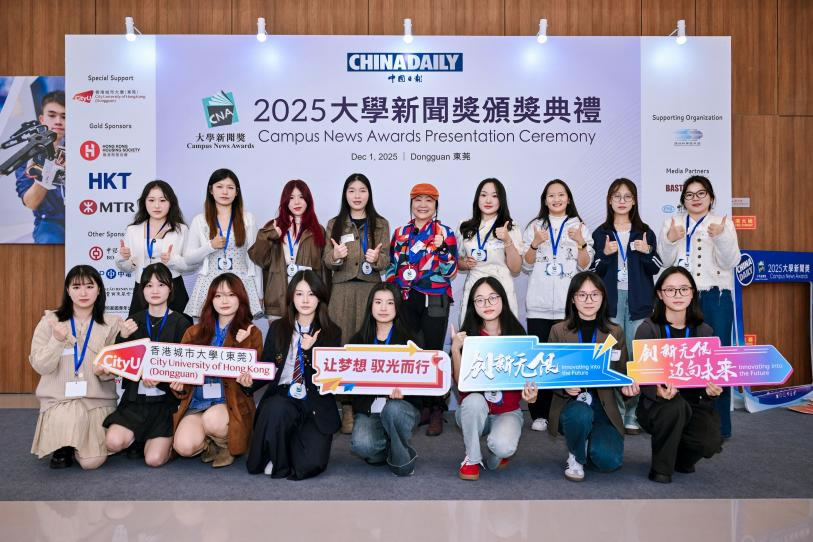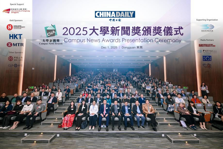 面包屑 Home / University News Centre / Awards inspire next-generation media innovators Awards inspire next-generation media innovators 13 Dec 2025 Premier campus news event celebrates talent, social awareness among students from mainland, HK, Macao, and TaiwanThe Campus News Awards 2025 program, organized by China Daily Hong Kong, has inspired young journalists from across the Chinese mainland, Hong Kong, Macao and Taiwan to stay curious and uncover stories in everyday life, while providing them with a platform to sharpen their skills and foster collaboration and exchanges among these aspiring youths.Distinguished guests and judges encouraged the next generation of reporters to keep questioning and, amid rapid technological advancements, to harness the power of new tools, such as artificial intelligence, and to make use of them to craft more creative and innovative stories.This year's 14th edition attracted more than 3,000 students from 97 universities, including eight from Hong Kong, three from Macao, and 12 from Taiwan. The competition featured multiple categories and received about 1,000 entries, ranging from Chinese and English news reporting to photo essays, page design and documentaries.At the awards ceremony, held on Dec 1 at City University of Hong Kong (Dongguan) in Guangdong province, 20 awards were presented. The occasion attracted nearly 300 attendees, including scholars, media professionals, professors, and journalism students.Delivering his speech at the event, Zhou Li, deputy editor-in-chief of China Daily and publisher and editor-in-chief of China Daily Hong Kong, said the Campus News Awards program has become a major platform for exchange among journalism students and scholars from across the mainland, Taiwan, Hong Kong, and Macao, witnessing the development of journalism education.Because of the growing influence of AI tools, this year’s program dropped some categories, such as Best in News Writing and Best in Headline Writing, and introduced four new ones: Best Environmental News Reporting, Best Innovative Applications Reporting, Best Photo Essay, and Best Feature News Video Reporting.Zhou said that these changes were not intended to downplay writing skills, but to encourage journalism students to move beyond a “tool mindset”."While AI can handle basic drafts, future journalists must learn to use it to dig deeper into stories and to innovate in their expression," he said. “It is not just to use AI, but to use it well, to truly capture the pulse of the times.”Lu Chun, vice-president of City University of Hong Kong (CityUHK) and executive president of CityUHK (Dongguan), said that enhancing global communication capacity is a critical step in connecting China with the world and fostering a more objective and amicable international communication environment.The program provides a platform for professional exchanges among students from across the Taiwan Strait, Hong Kong and Macao. It is not only an encouragement for young journalism talent, but also a vivid embodiment of educational openness and a commitment to international communication," he said.Lu also encouraged students to stay true to their journalistic ideals, shoulder the responsibilities of the times, and view the program as a starting point for contributing their wisdom and strength to journalism and social development.Aspiring young mindsThe program has also motivated many aspiring young minds to observe the world around them and voice their perspectives on social issues.Among the winners were Zhang Shuping and Chen Yuqian from South China University of Technology, whose team took home the Best News Reporting (Chinese) award for a piece examining violent incidents against healthcare workers in China.The team collected around 70 cases through data crawling and interviews, and analyzed the underlying causes and systemic problems behind them."We are thrilled to win the award. We've put in a tremendous effort to collect and piece together all this scattered information," Chen said. "It was a difficult task and also our first time doing it. The result is a recognition of everyone's hard work."Zhang described the award as a "valuable honor" for her and her fellow journalism students. "It inspires us to carry forward the ideals of journalism, to focus on society's pain points and challenges, and to contribute in our own way," she said.Huang Tzu-i, a merit award winner in the Best Environmental News Reporting (Chinese) category from Shih Hsin University in Taiwan, said the program allowed her to see the work of fellow journalism students and the topics they are exploring. “It made me think about the social challenges we are facing and how we should pay greater attention to them.”Huang’s team focused on the survival challenges of Sibataniozephyrus kuafui, a rare butterfly species native to Taiwan that is being threatened by habitat destruction. They also examined broader environmental protection issues in the context of climate change.She said their reporting had a “significant influence” on her, prompting her to reflect on how she could help address the crisis.“It made me realize that we should pay more attention to environmental issues and start with ourselves, by taking actions such as reducing plastic use to make our environment a better place,” Huang said.Media veteran Mike Rowse, a member of the awards jury, praised the contest for encouraging critical thinking among the students. “Young people should ask questions, and journalism encourages them to do that. A competition that rewards the people who ask the best questions and write about them has got to be good,” he said.The program also inspired educators to explore new ways of cultivating future journalists.“We’ve also seen some new categories added this year in response to shifts in the communication and journalism industries,” said Hong Chen, a professor at Chongqing Technology and Business University, who has guided her st