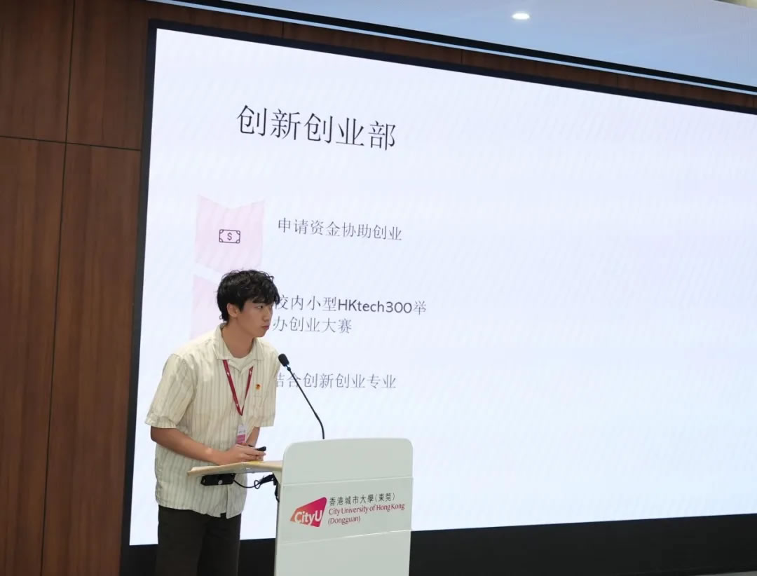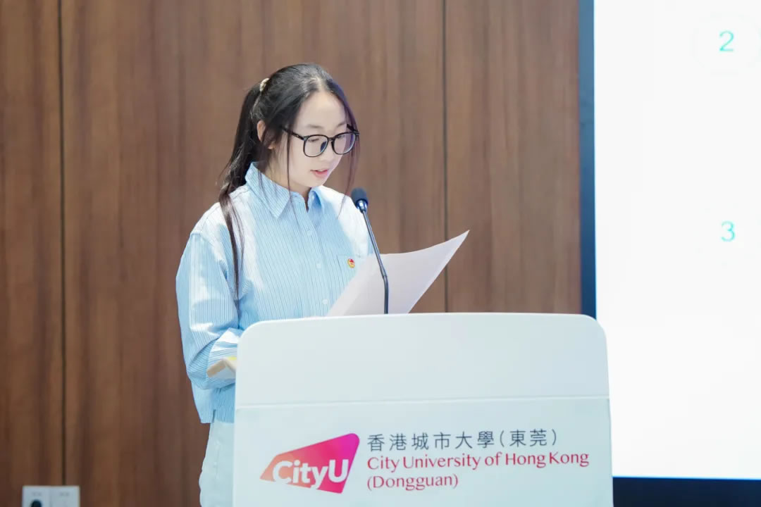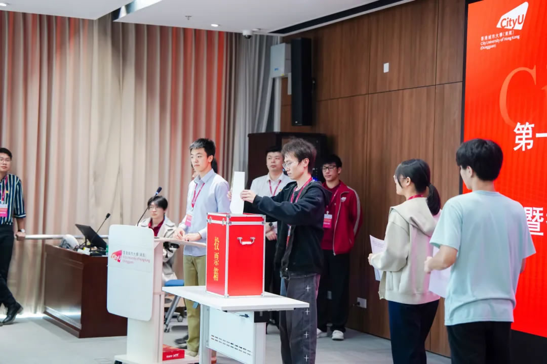 面包屑 首页 / 新闻资讯 / 香港城市大学(东莞)召开第一次学生代表大会 香港城市大学(东莞)召开第一次学生代表大会 2025-12-10 预备会议本次大会分为预备会议和正式会议两个部分。预备会议由全体学生代表参加,会议审议了《香港城市大学(东莞)学生会章程(草案)》《香港城市大学(东莞)学生会第一届轮值主席团选举办法(草案)》等文件。正式会议正式会议在庄严的国歌声中拉开序幕,香港城市大学(东莞)党支部书记赵毅、协理副校长李远、校长助理及学生事务处主任薛铮参加会议。会议由学生会(筹备)主席团成员李宗骏主持。听取学生会(筹)工作报告学生会(筹备)主席团成员李宗骏代表学生会(筹)向大会作工作报告,李宗骏同学分别从组织建设与活动组织两方面介绍了自学生会(筹备)主席团成立后的工作推进情况。宣读东莞市学联批复校长助理、学生事务处主任薛铮宣读东莞市学联《关于同意召开香港城市大学(东莞)第一次学生代表大会的批复》。审议通过章程草案正式会议上所有学生代表表决通过了《香港城市大学(东莞)学生会章程(草案)》。宣读候选人简历大会通过了总监票人、监票人和计票人名单及相应选举办法。学生会指导老师宋帅东宣读了《香港城市大学(东莞)学生会第一届轮值主席团候选人简历》。选举产生第一届轮值主席团徐紫峰、冯子彬、陆成洋、王思睿四位同学先后进行了学生会主席团成员竞选演讲。候选人徐紫峰作竞选演讲候选人冯子彬作竞选演讲候选人陆成洋作竞选演讲候选人王思睿作竞选演讲演讲结束后,现场学生代表进行投票。计票结束,协理副校长李远宣读选举结果并为当选同学们颁发聘书。协理副校长李远与当选为学生会主席团的学生合影(左起):徐紫峰、陆成洋、冯子彬香港城市大学(东莞)党支部书记致辞赵毅书记对大会的顺利召开表示祝贺并肯定了学生会(筹备)主席团之前的工作成果。赵书记认同港城莞学生会“引领、服务、桥梁”的定位,并对学生会第一届主席团提出四点期望:加强政治引领、团结凝聚力量、实践孕育创新、增强综合素养。最后赵书记勉励大家不忘“请党放心,强国有我”的青春誓言,用奋斗书写属于港城莞学子的精彩华章!最后,港城大(东莞)第一次学生代表大会在国际歌中落下帷幕。此次学代会的成功召开,是港城大(东莞)完善现代大学治理、彰显育人初心的重要一步,标志着学生组织化参与校园建设的新起点,为这所融合大湾区优势的新型高校注入了蓬勃的青春活力。在党支部的领导和学生会的纽带作用下,全校师生必将同心协力,共同推动学校在高水平办学道路上稳步前行,为湾区发展与国家未来培养更多栋梁之才。 相关资讯 港城大(东莞)与剑桥大学签署合作备忘录 产学融合,智绘未来:通莞股份捐赠共建“商业人工智能实验室” 香港城市大学(东莞)召开第一次学生代表大会 同城同心,共育人才:东莞农商银行向港城莞捐赠专项资金 共建“全球第三极”:港城大(东莞)举办RISC-V × OpenHarmony创新论坛