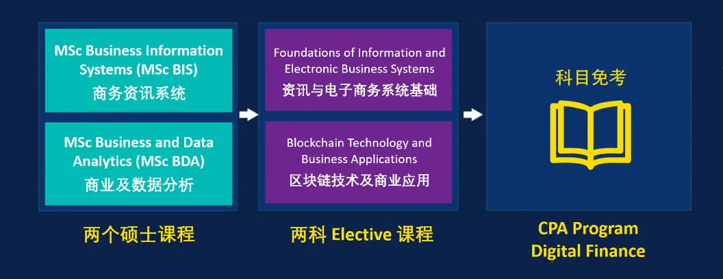 面包屑 首页 / 新闻资讯 / 喜讯!港城大(东莞)BIS&BDA硕士课程获澳洲会计师公会认证课程指定科目豁免 喜讯!港城大(东莞)BIS&BDA硕士课程获澳洲会计师公会认证课程指定科目豁免 2026-03-11 正式签约香港城市大学(东莞)与澳洲会计师公会(CPA Australia)正式签署合作协议,港城大(东莞)商务资讯系统理学硕士、商业及数据分析理学硕士专业学子考取澳洲CPA资格可享受指定科目豁免,实现专业学习与国际职业认证的有效衔接。国际认可澳洲会计师公会为全球领先的专业会计团体,目前拥有超172,000名会员,分布于全球100多个国家和地区,其中超25,000名会员任职于各领域高级管理岗位,其颁发的CPA认证在全球财会行业具有高度专业认可度。课程免考根据本次合作协议,港城大(东莞)商务资讯系统理学硕士(BIS)与商业及数据分析理学硕士 (BDA) 专业学生,成功完成IS6200区块链技术及商业应用(Blockchain Technology and Business Applications)与IS5313资讯与电子商务系统基础(Foundations of Information and Electronic Business Systems)两门课程后,可豁免澳洲CPA课程中的数字金融(Digital Finance)科目的修读,助力学生缩短认证考取周期。认证直通车此次合作充分彰显了信息系统与金融学科深度融合的办学特色。通过整合港城大(东莞)在数智商业、信息系统领域的优质教学资源,并结合澳洲会计师公会的国际专业认证体系,为学子搭建起 “校内专业学习 + 国际职业认证” 的发展桥梁,实现专业学习成果与国际职业标准的精准匹配,为学生在全球财会与商业数智领域的职业发展提供坚实专业支撑。 相关资讯 生物信息学×智能计算:BIC 2026国际学术研讨会于港城大(东莞)举办 能源与动力专业教授在Nature发表评论文章,呼吁关注更加包容的绿色出行方式 三度蝉联“全球最国际化大学”! 余诗曼:高能量读研,2年体验N种生活 喜讯!港城大(东莞)BIS&BDA硕士课程获澳洲会计师公会认证课程指定科目豁免